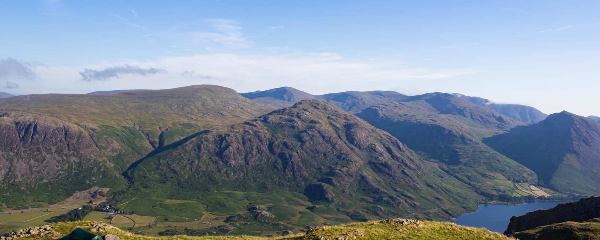 Breezy but very warm summers evening. I took my Thermarest Trekker Chair to sit outside my tent in reasonable comfort. The pink gin came out, and there was nothing else to do but watch the sunrise descend behind Middle Fell. You also get a view of the coast by Whitehaven, and on a clear day, you can see the Isle of Man. As the sun set, the sky had a blue/purple haze which hovered around Wast Water. The view up there is stunning. You can see right down the valley to Scafell. Sunrise was equally impressive, and I got some pics before packing up and descending and round 2 of dodging horseflies.
